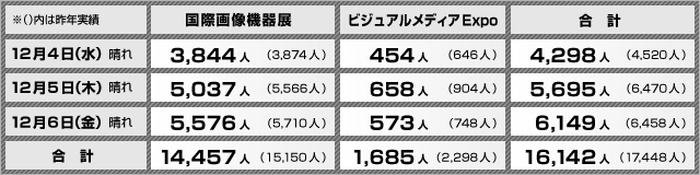 | 開催日 天気 | 国際画像機器展2025 来場者数 |