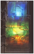 図3は,そのときの作品である。スリーカラーのレインボータイプである。被写体は拡散版を背景にシルエットを撮影した。4枚の異なるイメージバリエーションを制作した。私のMOHのA.I.R.はこれが最後だった。数年後,ポージーに会った時,「ブーツはどうしている?」と聞いたら,一瞬曇った表情を見せ,ミュージアムから外に飛び立した瞬間,車と衝突して即死だったと言った。きっと室内で主人の仕事が終わるのを待っていて,さて帰れると喜び勇んで外に飛び出したのだろう。従順でとても賢いブーツのことは,ニューヨークでの忘れられない,楽しくも切ない思い出なのである。
