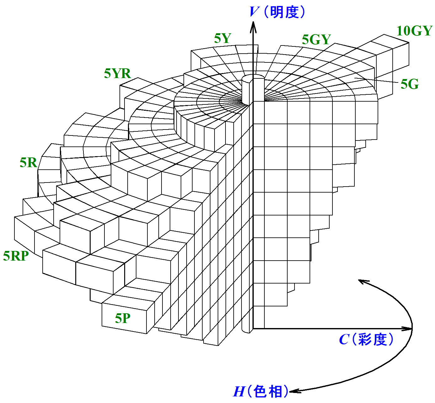 マンセル値はJIS Z 8102: 2001 “物体色の色名”より。