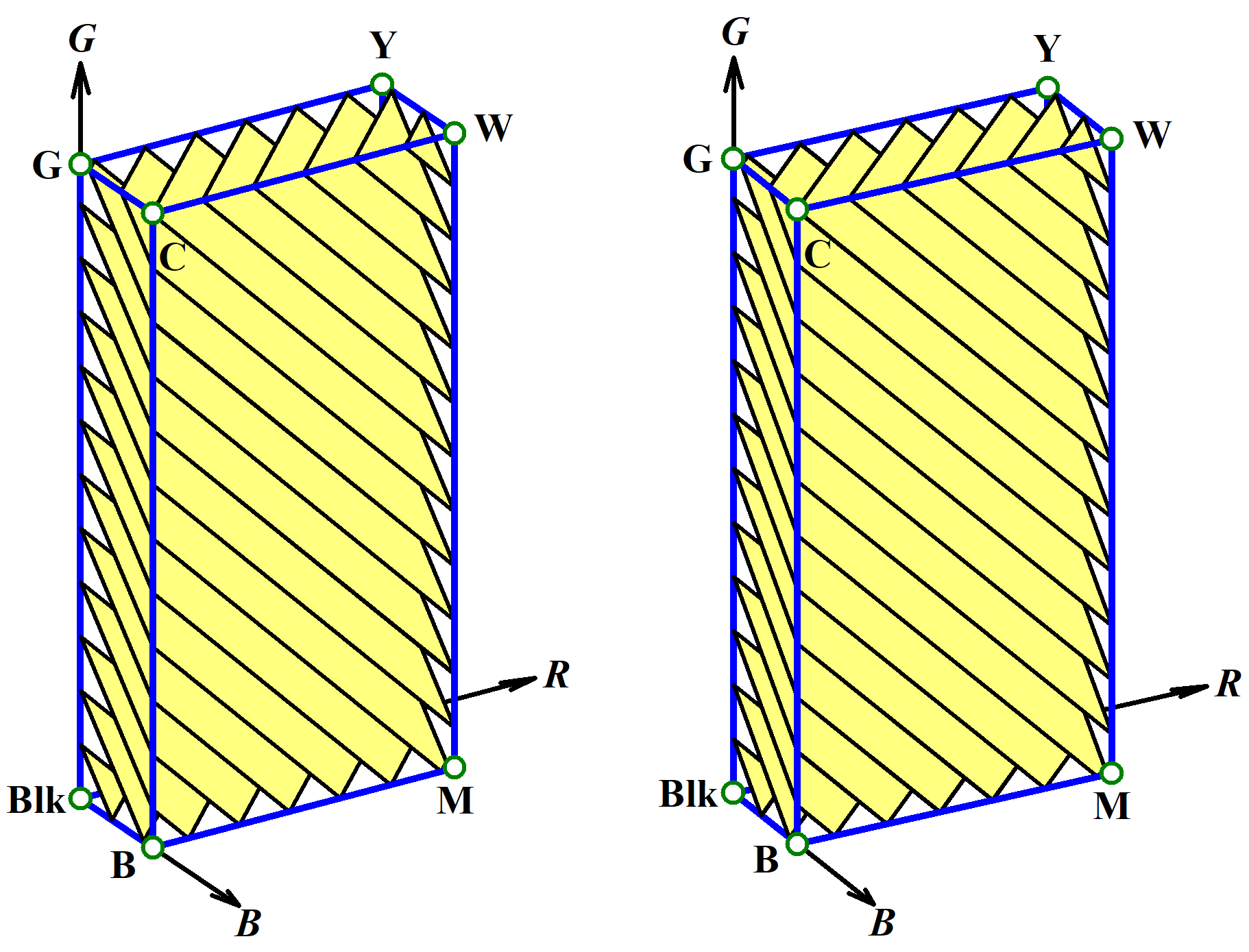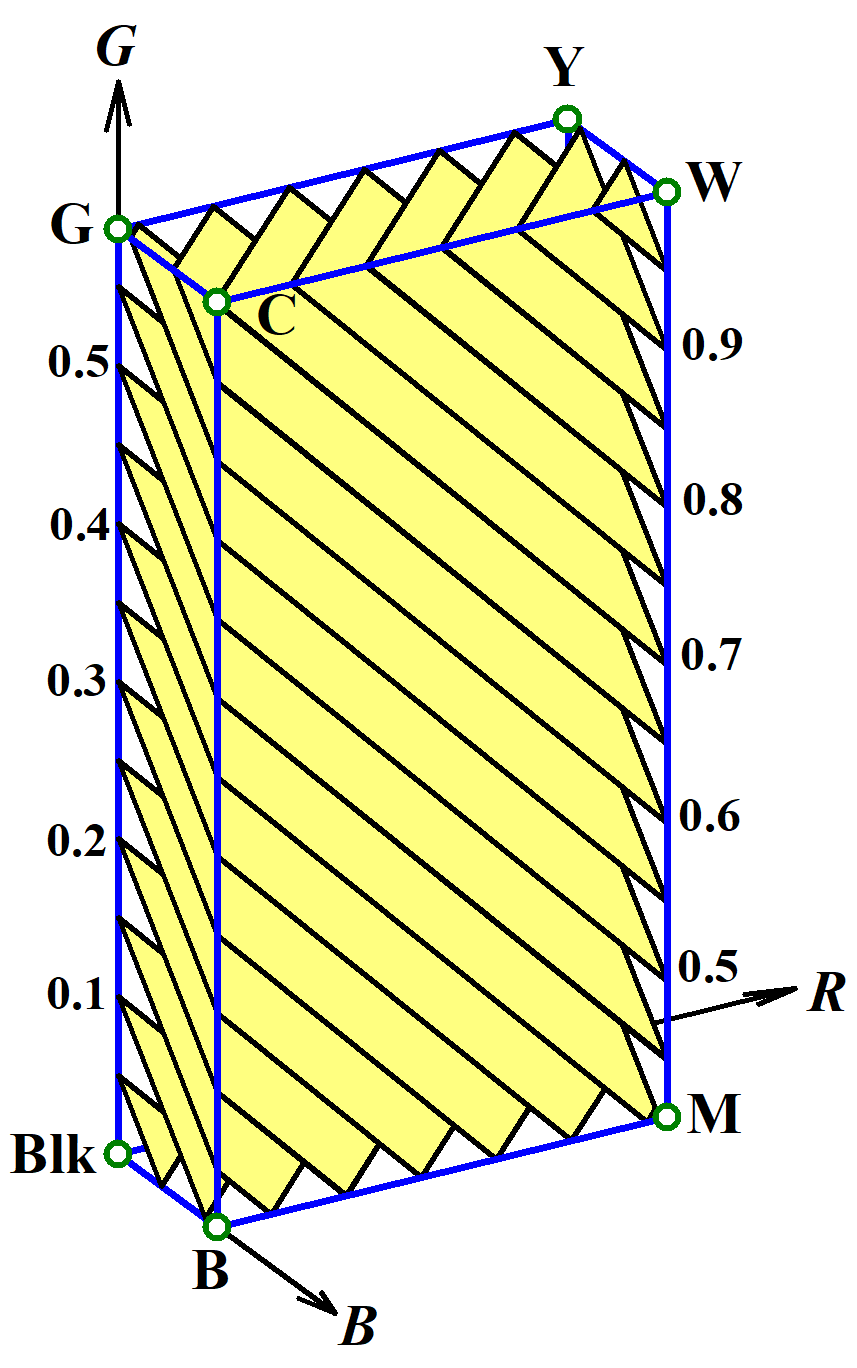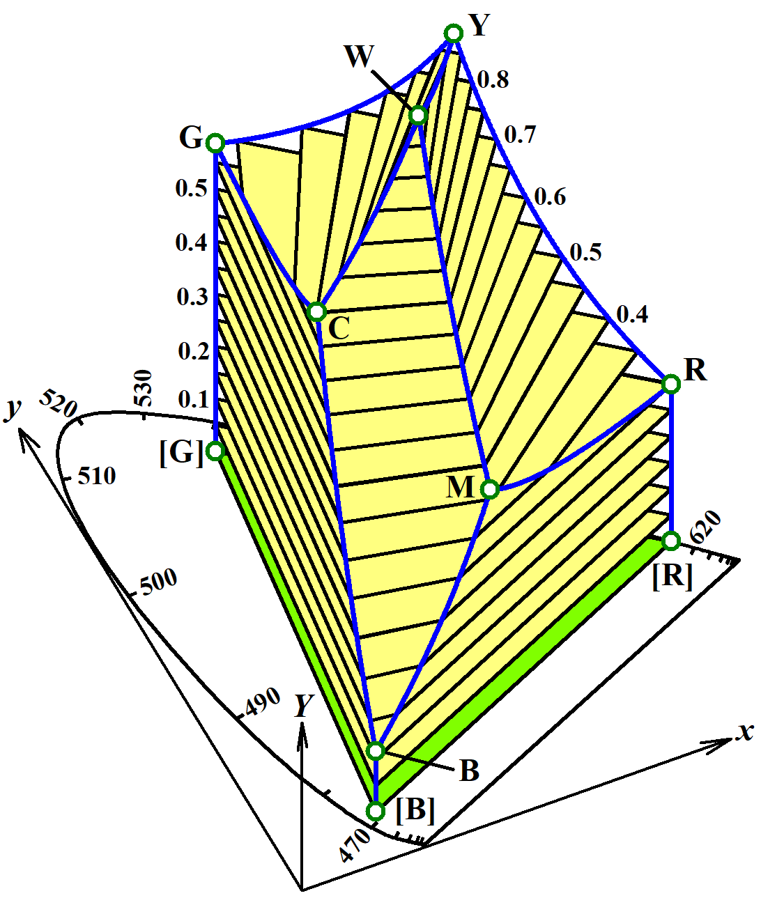 図6 RGB色空間上に表した(r(λ), g(λ), b(λ))