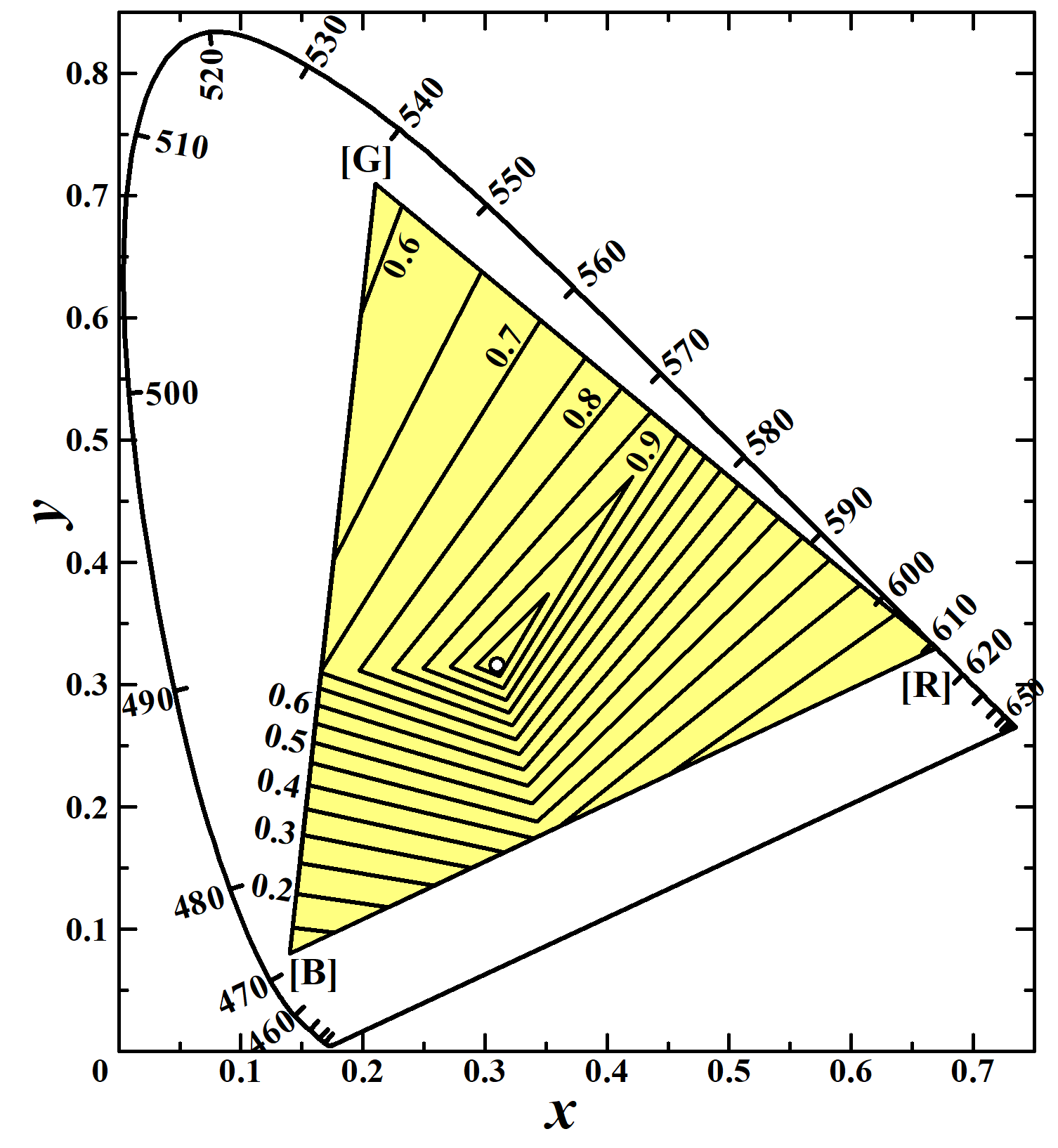 図17 xy色度図におけるNTSC色域の明度の等高線