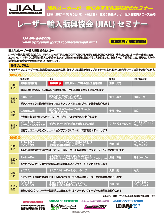 ビーム(株)455-010 - 海外メーカーが一堂に会す光先端技術のセミナー