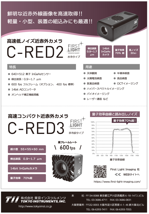 (株)東京インスツルメンツ470-008 - FIRST LIGHT社 高速艇ノイズ近赤外カメラ C-RED2