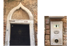 訪ねた家は,スタッフのおじいさんの家という,中世の貴族の館だった建物だそうだ。つまり孫の彼はベネチアの貴族の出身か? 現在は部屋の一部がアパートのように使われていて,あまりメンテナンスが施されていない。しかし,昔の館の面影はいたるところに残っていた。4,5階建ての建物の玄関を入ると,1階のホールには,美しい大理石の装飾タイルが敷き詰められた床が広がっていた。よくみると石の中にアンモナイトやらいろいろな化石らしきものが入っている。化石入りの大理石はかなり高価で贅沢なものと聞く。ベネチアは今も地盤沈下が続き,この1階のホールも毎年のように海水が上がって,床は水浸しになってしまうという。生活空間として現在は使えないのだそうだ。この美しい豪華な大理石の床も海面下に沈む風前の灯とは何ともったいないことか。1階のホールから石の階段を上がっていくと,途中の壁にところどころ16~17世紀風の肖像画がかかっている。「もしや,これって高価なもの?」なんて失礼な質問をしたら「全然そんなものではない」という返事が返ってきた。個人所有の贅沢な館の維持はきっと大変なのだろうなあ,高価な絵画だったら階段の壁などにはかけて置くはずがないし,日本の日常では出会えない経験にいろいろ空想がふくらんだ。
