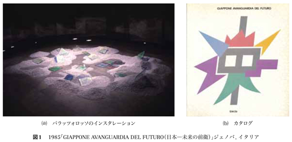 1985年イタリアのジェノバで開催された日本フェスティバル「日本―未来の前衛」(カタログ図1 (b))に招待された。この展覧会は日本の現在の文化を紹介するという企画で,映画,デザイン,ファッション,舞踏などのジャンルが網羅され,コンテンポラリーでラディカルな作品が上映,展示された。私の展示会場(図1 (a))のパラッツォロッソ(赤い宮殿)は,大理石の床の歴史的な美しい空間であった。いつものとおり事前サンプルを送り,重さを指定しておいた。そして,展示スペースに行くと,部屋の隅に貧相な量の砂利の袋が置かれている。ずいぶん量が足りない。確かめると,指定された通りの重さだと言う。しばし考えて,合点がいった。準備された小石の素材は100%大理石であった。日本の寒水砂は軽い石灰岩が多く含まれているため,比重がかなり軽い。そのため,見かけのボリュームに顕著な違いとなって表れたのだ。展示空間に見合う量を考えると,倍以上必要だ。主催者を拝み倒して急きょ大量の追加をお願いする羽目になった。重さにすると約500 kgほどだ。展覧会の会場づくりには,いつも大工や,特にホログラムの場合,電気の職人さんたちとの共同作業となる。準備のため私のスペースにやってきた彼らは,今まで扱いなれた絵画や美しく彫刻された大理石でなく,山積みの砂利の袋を前に,もっと必要だと騒ぎ,重い袋を引きずり奮闘してインスタレーションを設営している私をながめて何を思ったのか,いつの間にか私にあだ名をつけていた。それが,“小石ちゃん”。