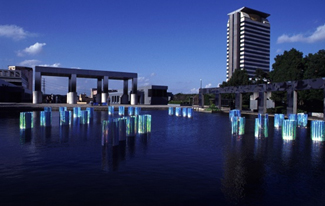 ![]() (a)池に中のインスタレーション | ![]() (b)夕方の情景 |