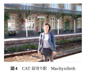 会議の会場からCATへは,不慣れな英国のローカル鉄道を乗り継ぎ,最寄りのMachynlleth駅で降り(図4),CATの見学センターは町から少し離れた広い山中(起伏のある小高い丘)に位置している。見学には一日がかりとなるようで,この町に2泊することになった。センターに行きやすい場所にはシティーホテルなどはなく,フランスの田舎に多い宿泊施設のついたレストラン風情の宿,いわゆるオーベルジュ(Auberge)を予約した。夕食に一階のレストランに降りていくと,客はみな地元の人々のようで,陽気なおじさんが声をかけてきた。何かと思ったら日本人の名前を連呼している。サッカー音痴の私にも,それが日本人サッカー選手の名前だとすぐわかった。日本人の観光客などめったに見かけないと思われるこの田舎の地で,私がなぜ日本人と分かったのか知らないが,日本選手の名前を聞かされたことにも驚いた。日本人も少しずつグローバル化が進んでいるのかと思った。