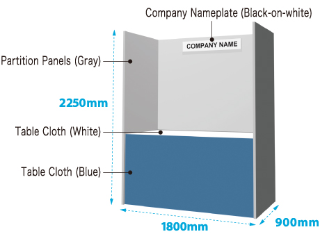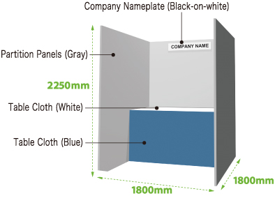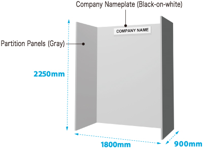 *The fees for the back panel, partition panel, company nameplate with regular characters, and exhibitor ID card are included.