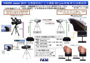 3Dハイビジョン映像を裸眼3Dディスプレイにライブ伝送超臨場感コミュニケーション産学官フォーラム(URCF)・高速光空間通信網推進協議会(OBN協議会)