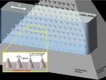 大阪産業大学などのグループは、ナノ秒紫外レーザーによりシリコン太陽電池表面に20 nm程度の先端を有するナノドット構造形成に成功した。特にレーザーを融解閾値以下のフルエンス(1パルス、単位面積あたりのレーザーのエネルギー)に調整し照射することで、回折限界よりもはるかに小さい、レーザー波長の1/12以下の構造を均一かつ高密度に材料表面に形成するレーザー超微細加工技術を開発した。