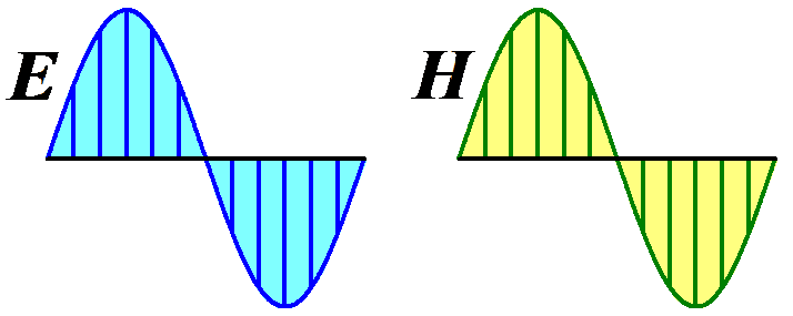 光エレクトロニクスの玉手箱 2013年7月号-補足 図2 電界と磁界の関係 (a) 前進波 (a’) 後進波 (b) 定在波 [←(a)+(a’)] 図C (a) 熱波と (b) 光波 の伝搬の比較 (a) 熱波 (b) 光波