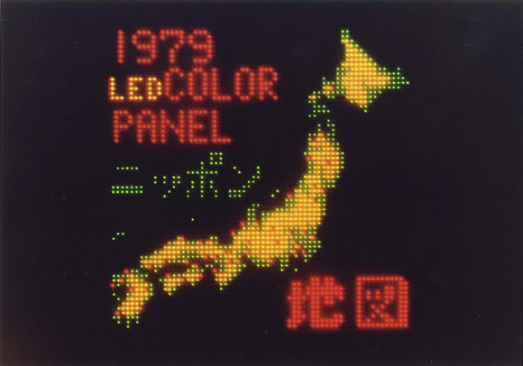 図8 GaP赤色LED,GaP緑色LEDを用いた平面形多色表示装置によるディスプレイ(黄色は合成色)
