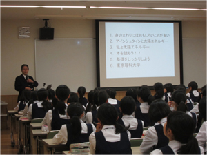 こうした出前授業を通じて,多くの人たちに科学の面白さやその必要性をもっと理解してもらえればと考えています。そのためには,まず指導する立場の小学校の教員から科学(の教育)について理解してもらうことが必要条件になります。理科の授業については,担任の先生が“指導するのは難しい”との理由で,最近では「理科支援員」を配置するなど措置が講じられました。特に,高学年の5年生や6年生への指導は難しくなりますので,そうした内容を理解し教授できる先生の育成が急務となっています。では,この現状を打開するにはどうしたらいいか――。私は,理科大の卒業生から理科や数学の指導に長けた小学校の先生を輩出していく必要性を感じました。これまで,理科大は中学校や高校の理科や数学の教員を,全国で最も多く輩出してきた実績があります。現在,全国の高校の校長先生をとってみても,理科大の出身者は約100人となっています。しかしながら,理科大には附属小学校がないこともあり,現状では小学校の教員を輩出できる環境にはありません。そのため,玉川大学の小原芳明学長に「小学校教員の課程で理科大の学生を,免許状の取得まで修学させてほしい」と依頼したところ,快諾していただき今年の2013年4月から5名の3年次の学生でその課程がスタートしています。これを足がかりとして,理科大からどんどん小学校の教員も輩出していきたいと考えています。また,こうした教員の増加によって,日本の初等教育において科学・理科の教育が充実し,科学・理科に関心をもつ子どもたちも増えていくことで,日本の科学の発展に寄与できればと願っています。