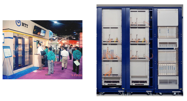 この写真(写真2)は,われわれが光ルーターとかフォトニックMPLSルーターという呼称で呼んでいた,光でルーティングする伝送装置です。スーパーコムというアメリカで当時一番大きな通信機器の展示会で,2001年に展示した時の様子です。