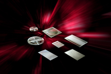 右:超精密加工を施したプレス成形用金型製作と金型の形状を忠実に転写できる高精度熱プレス成形で製作された各種レンズ