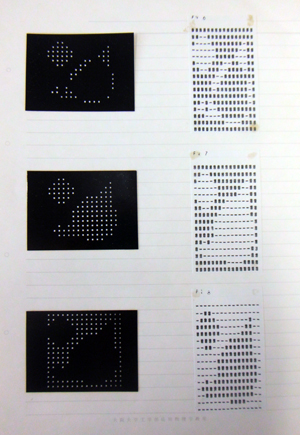 影絵があれば検証実験は簡単にできます。それで,手作りの実験装置を作り簡単な論理演算をしました。当時は,いまのようなパソコンなどはなかったので大型計算機センターで比較のための計算をしました。この写真(写真2)は当時の実験結果です。