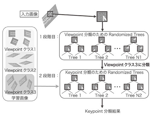 (b) 2段階のRandomized Treesを用いたキーポイントの分類 図6 高速処理に向けたRandomized Trees手法